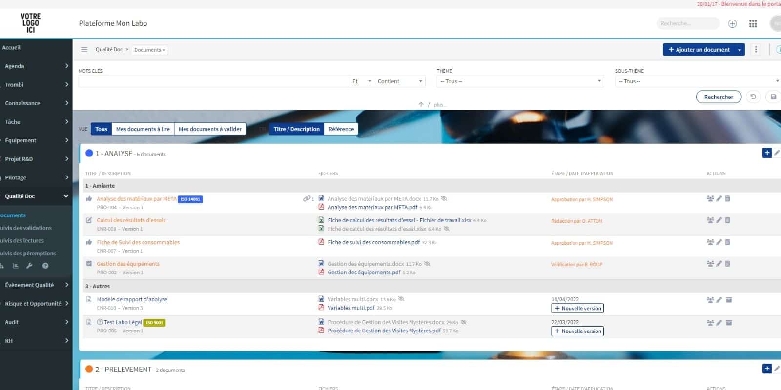 Intra’know met à disposition des laboratoires une plateforme collaborative permettant de dématérialiser les référentiels qualité, le traitement des incidents, la gestion d’un parc d’équipements d’analyse et des habilitations nécessaires.