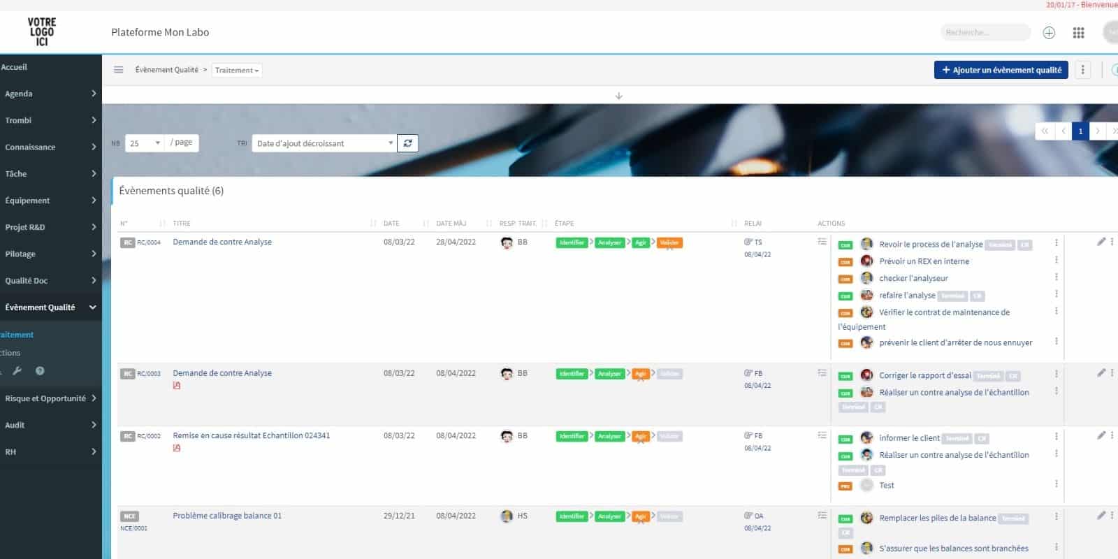 Améliorez la gestion des flux et la définition d’actions, dès lors qu’un incident est constaté (dysfonctionnement, réclamation, constat d’audit, écart réglementaire…), en centralisant le suivi sur la plateforme et en offrant une vue d’ensemble très intéressante pour le pilotage.